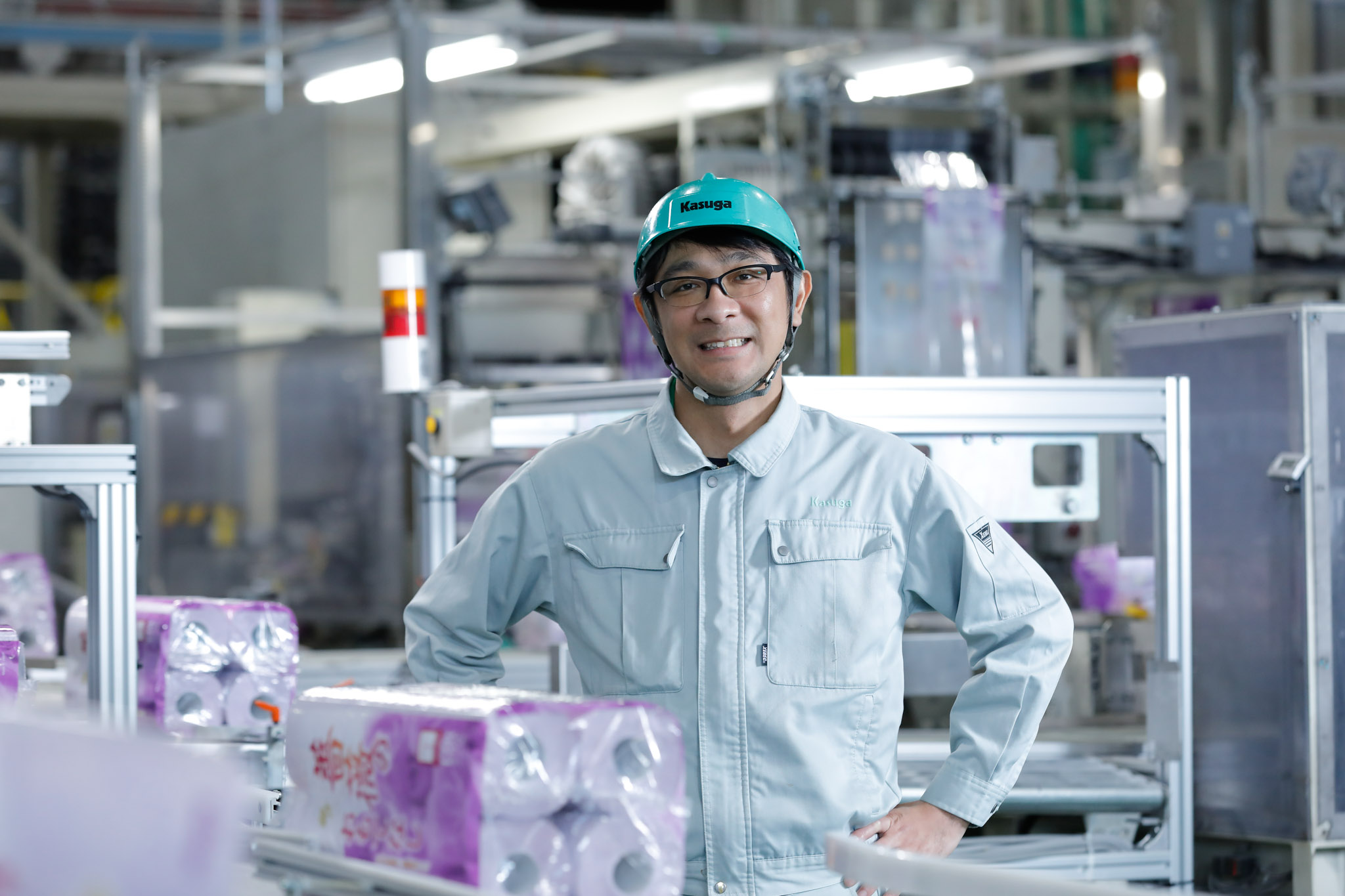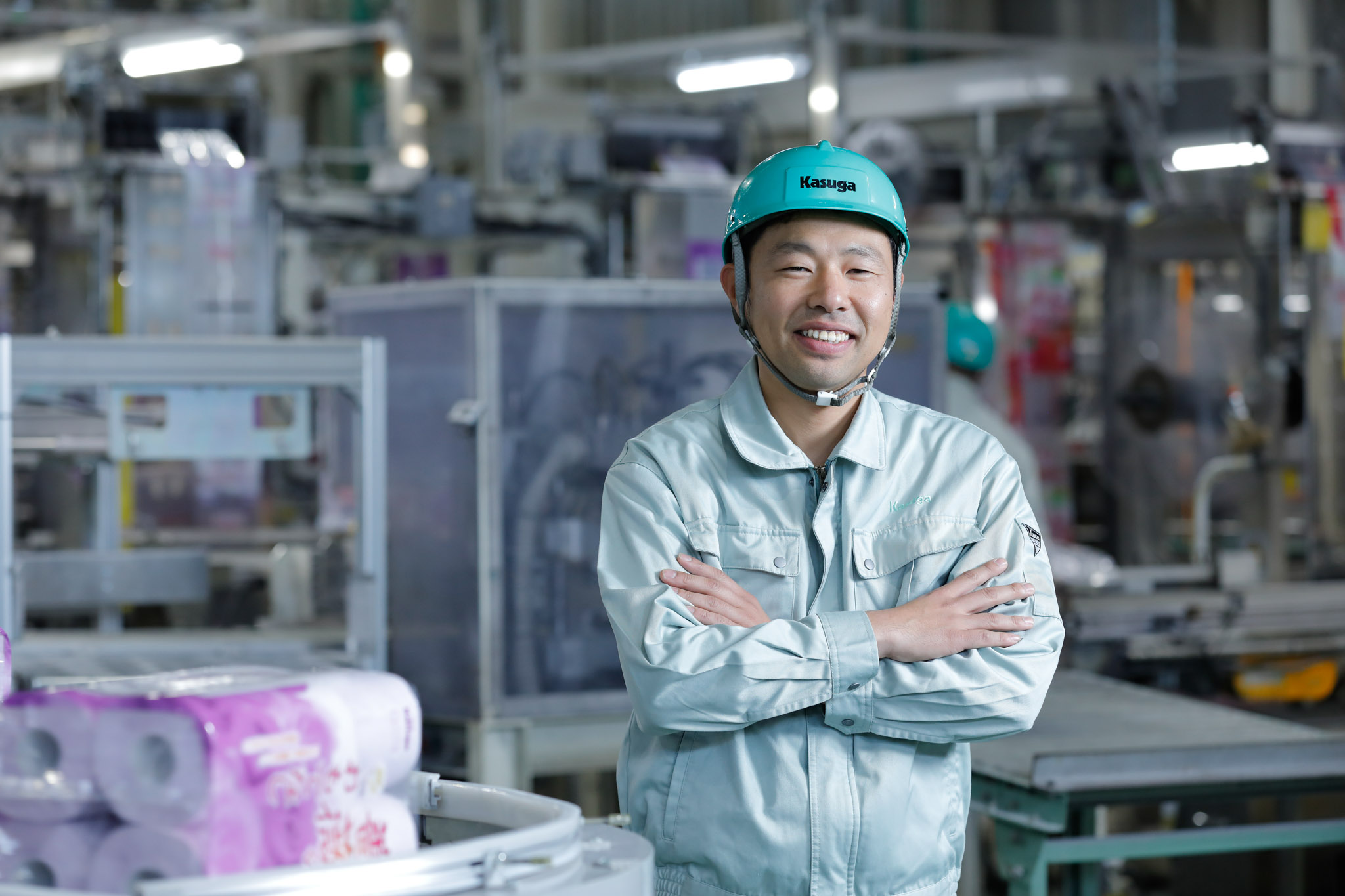 私は人々の生活を支える身近な製品に携わりたいという思いから、製紙業界を志しました。Kasugaは、再生紙の活用や環境保全への取り組みに非常に積極的で、その姿勢に深く共感しています。自分の手がける仕事が、単に製品を作るだけでなく「地球環境を守ること」に直結しているという事実に、私は大きなやりがいとプライドを持って、日々トイレットペーパーの製造に向き合っています。Kota Takahashi